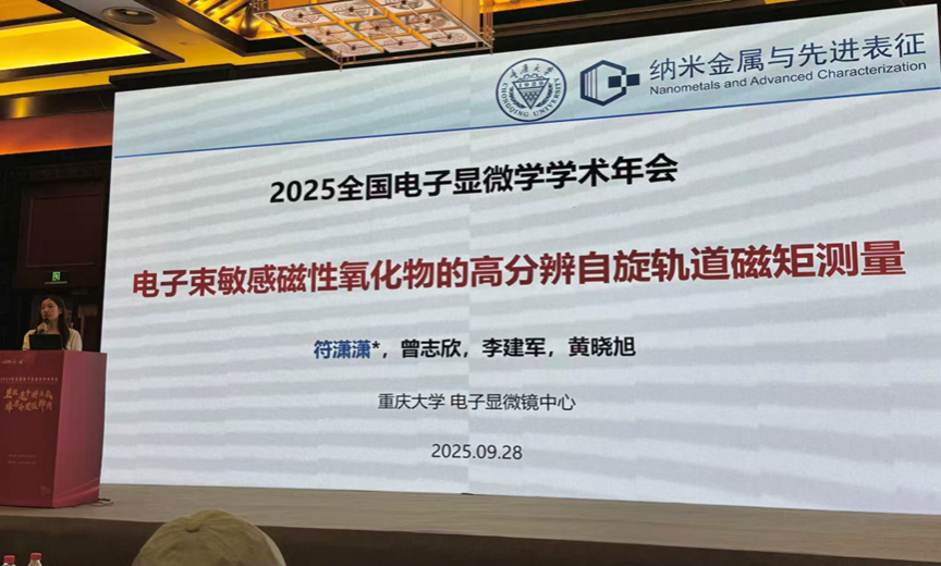 2025年9月28日,课题组副教授参加了2025年全国电子显微学学术年会,并进行了口头报告,报告题为“电子束敏感磁性氧化物的高分辨自旋轨道磁矩测量”。报告介绍了团队针对电子束敏感氧化物的高分辨自旋轨道磁矩测量技术方法学创新成果。